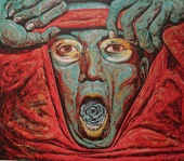 邓箭今的作品既然带着经验记忆的自述性质,他就不能不面对一个真实的“自我”。而这个真实的“自我”又常常在自然人性与文化理性的冲突中发生偏离。在人与人之间,男性与女性之间无法沟通的心灵地带,阻隔了欲望,却滋生了暴力。“一切暴力都起源于性”,这个处于无奈与焦虑中的真实“自我”,终于在梦游中手持枪械,走向凌虐、施暴与犯罪的“黑色幻想”之中(见《有关目击者的梦游记录》系列作品)。这种优雅而又迷离的幻觉使邓箭今在寻求生命存在的价值和意义时,对自我发生了怀疑。而作为一个有血有肉的男人,正是导致这一精神危机的根源。“男人”,这个与生俱来、不可更改的性别身份,如他所说,它的“强制性、侵略性”,“总让人处在终极、被动的迷茫之中”。